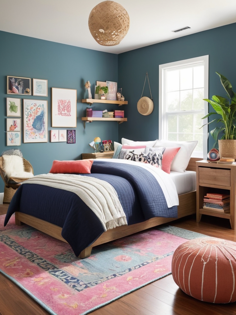 Rugs are a great way to decorate a 14-year-old’s bedroom. They help create areas for studying, relaxing, or sleeping.