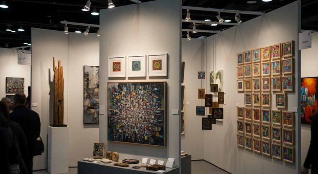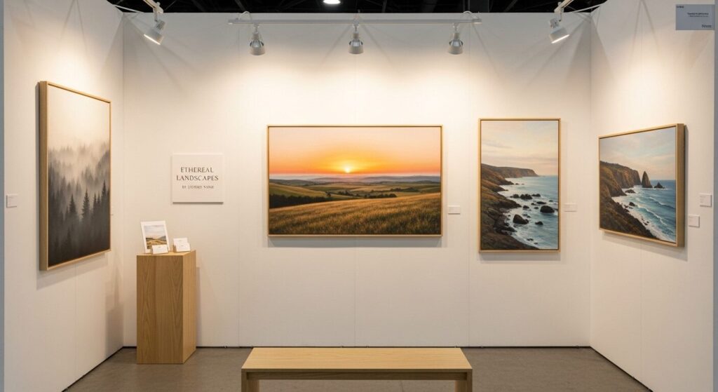 These kinds of art booth display designs give visitors a polished, professional vibe while keeping the focus on your pieces.