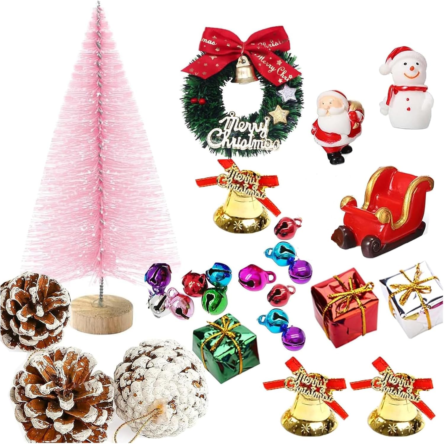 This 27-piece miniature Christmas set brings holiday magic to dollhouses. It includes a 5.9″ pink mini tree, tiny wreath, and festive accessories perfect for tiny holiday setups.