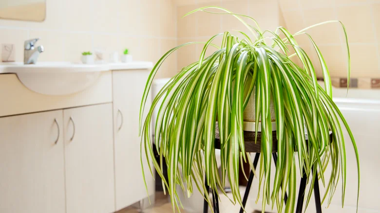 Spider plants are hard to kill indoor plants, perfect for high-humidity rooms.