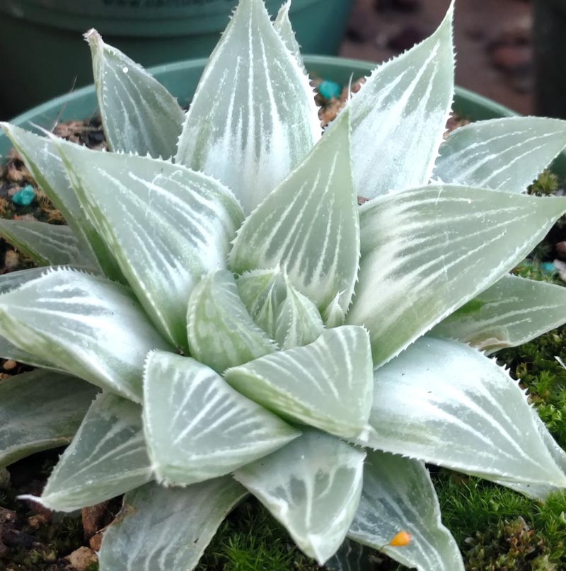 This translucent, striped Haworthia variety brings subtle Halloween vibes. The eerie white markings give it a ghostly glow, making it ideal for October. Keep soil lightly moist to prevent leaf shrinkage.