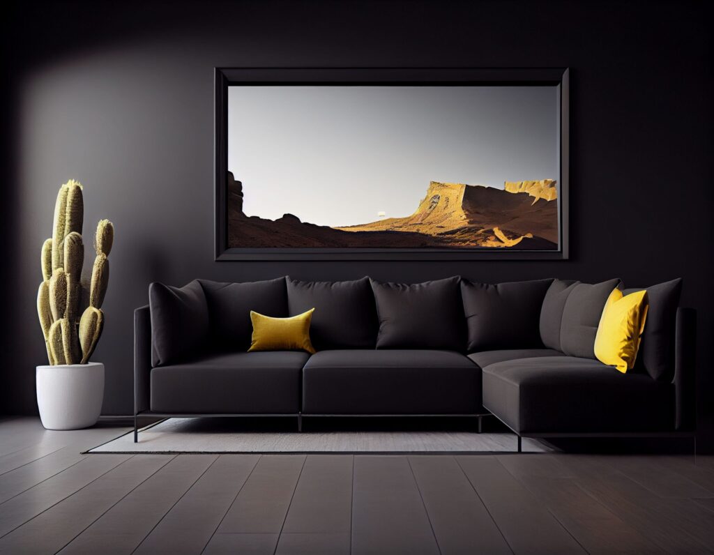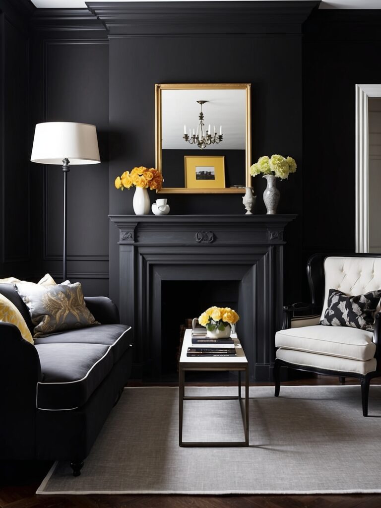 Black walls paired with minimal décor feel bold yet uncluttered.