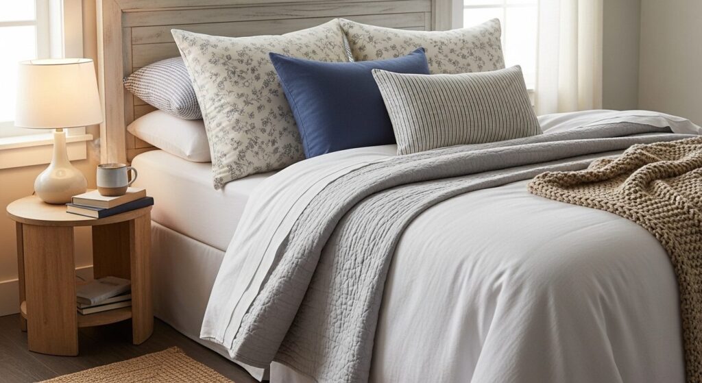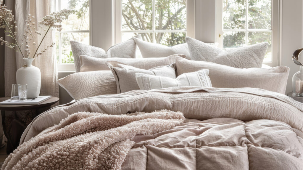 Layer it over crisp sheets or a textured comforter for a soft, cloud-like finish. It’s one of those cozy bed looks that instantly makes your space feel calm and comforting.