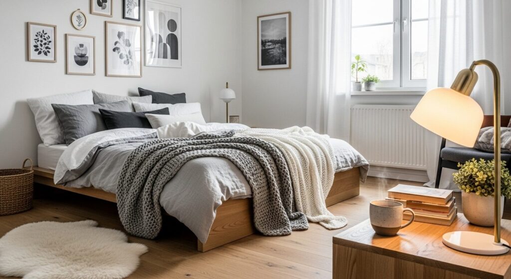 A minimalist cozy bed look doesn’t mean cold or empty — it means intentional simplicity. Choose quality over quantity.