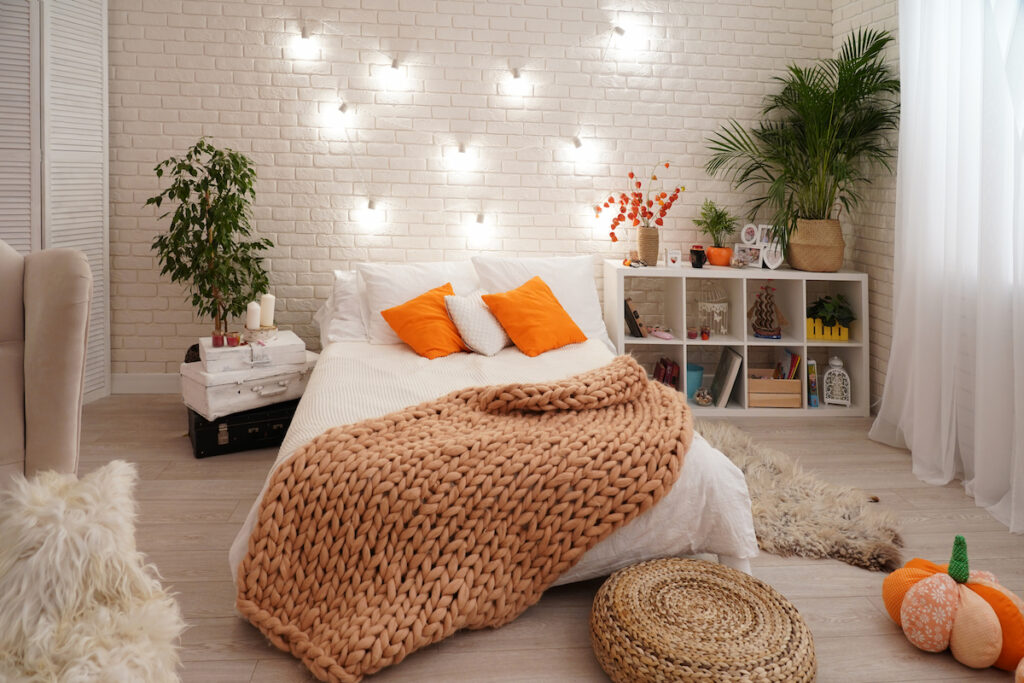 Layer your bed with plush blankets, quilted comforters, and velvet or faux fur throws. Mix materials like linen, cotton, and knits for depth and warmth.