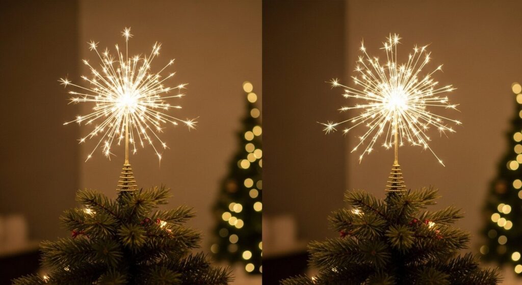 If you want something bold and stylish, a light-up starburst topper is the way to go. Its bright arms sparkle like fireworks, making your tree glow with luxury.
