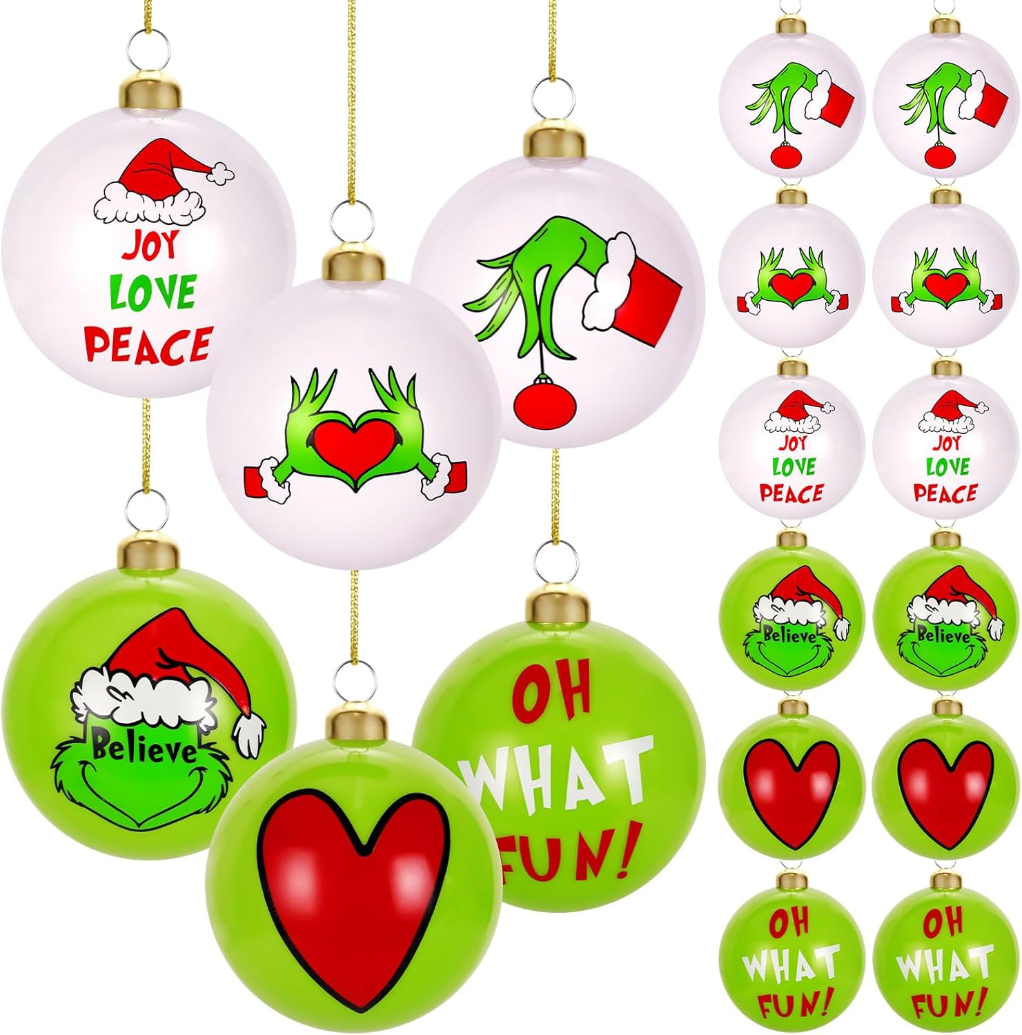 These Grinch Christmas Decorations bring instant cheer with their bright green and white shatterproof ornaments. Their glossy finish reflects twinkling lights beautifully, giving your tree a lively, playful sparkle.