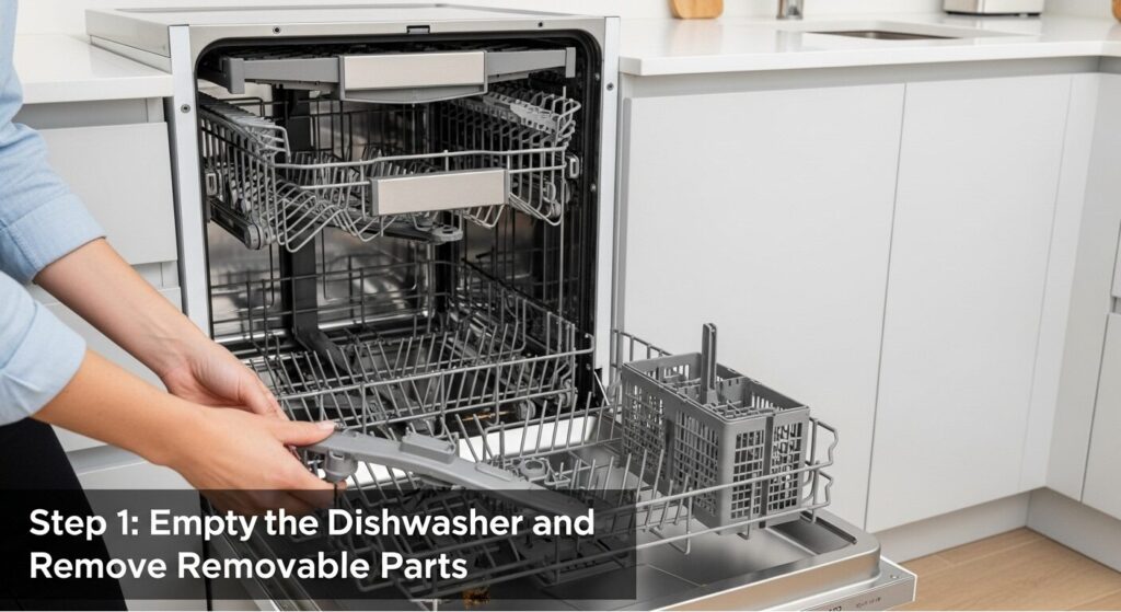 Step 1: Empty the Dishwasher and Remove Removable Parts