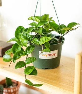 Known for its thick, waxy leaves and fragrant star-shaped flowers, the Hoya is a trailing succulent-like plant that thrives in a hanging basket. Country Living highlights its space-saving beauty and low watering needs.
