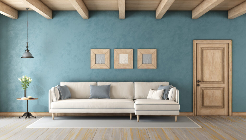 What furniture looks best with light blue living room walls?