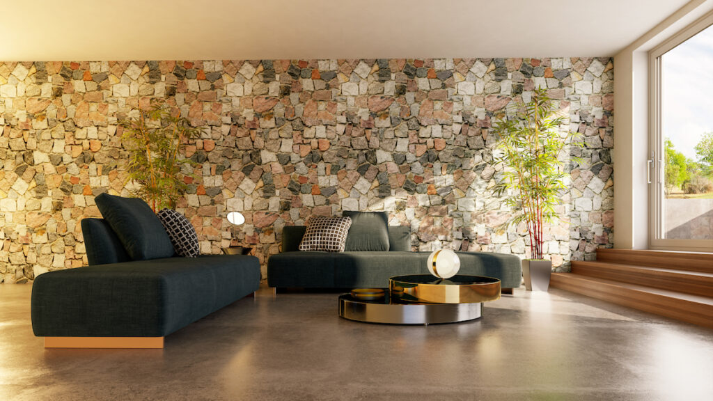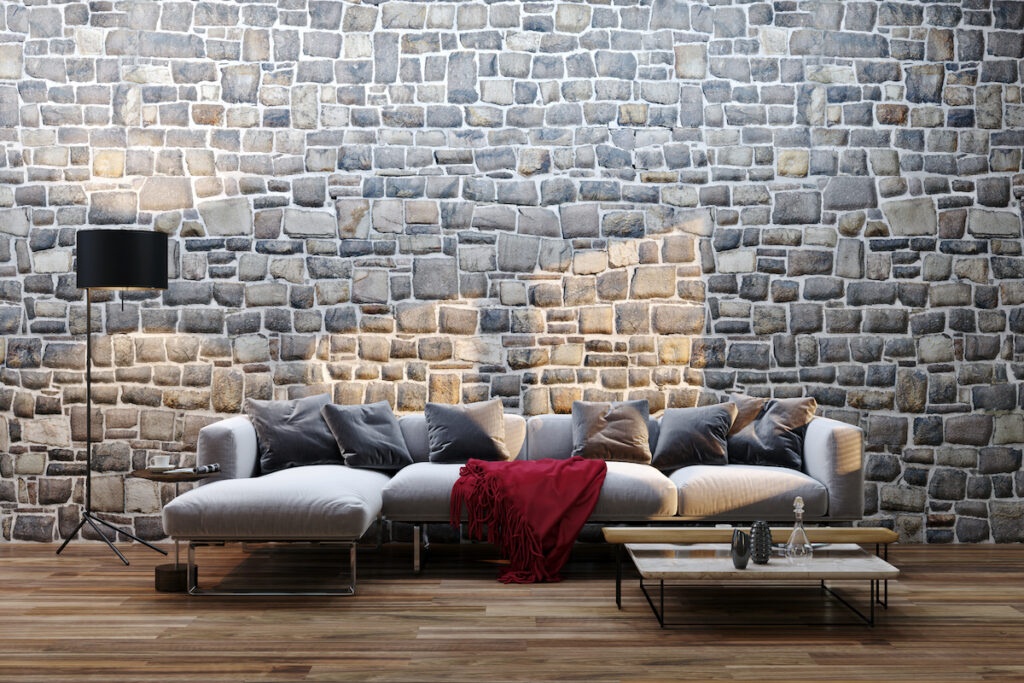 Are stone walls still in style for living rooms?