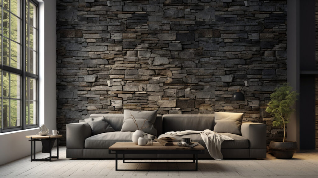 12. Black Stone Feature Wall for Bold Impact