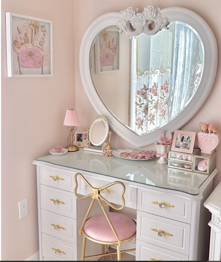 A heart-shaped mirror instantly reinforces the romantic coquette aesthetic while serving as a functional focal point for your vanity. The soft curves and reflective finish add charm and elegance, making everyday routines feel extra special.