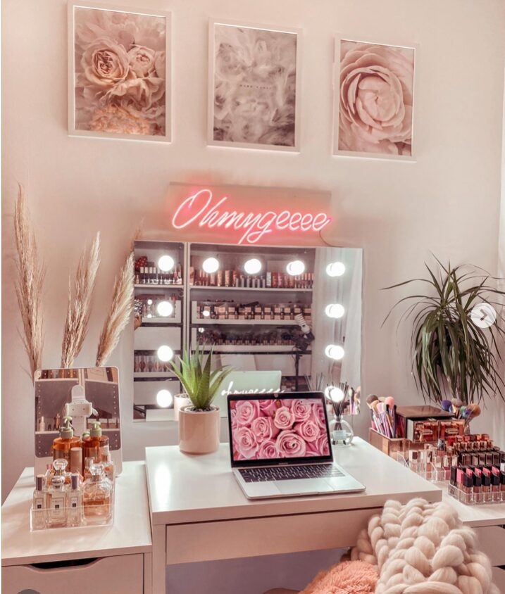 This setup is perfect for creators and beauty lovers who want picture-perfect décor that doubles as functional storage.