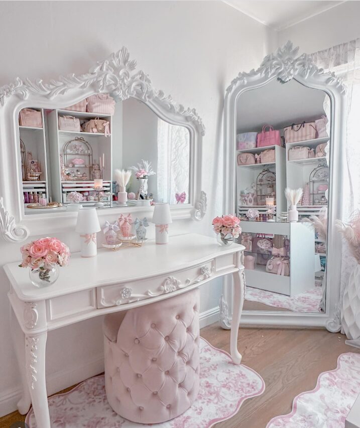 Whether you’re looking for TikTok-worthy vanity setups, glamorous storage ideas for makeup and accessories, or interior design inspiration to create your own coquette paradise, these rooms combine style, function, and dreamy aesthetic vibes that deliver true coquette core energy.