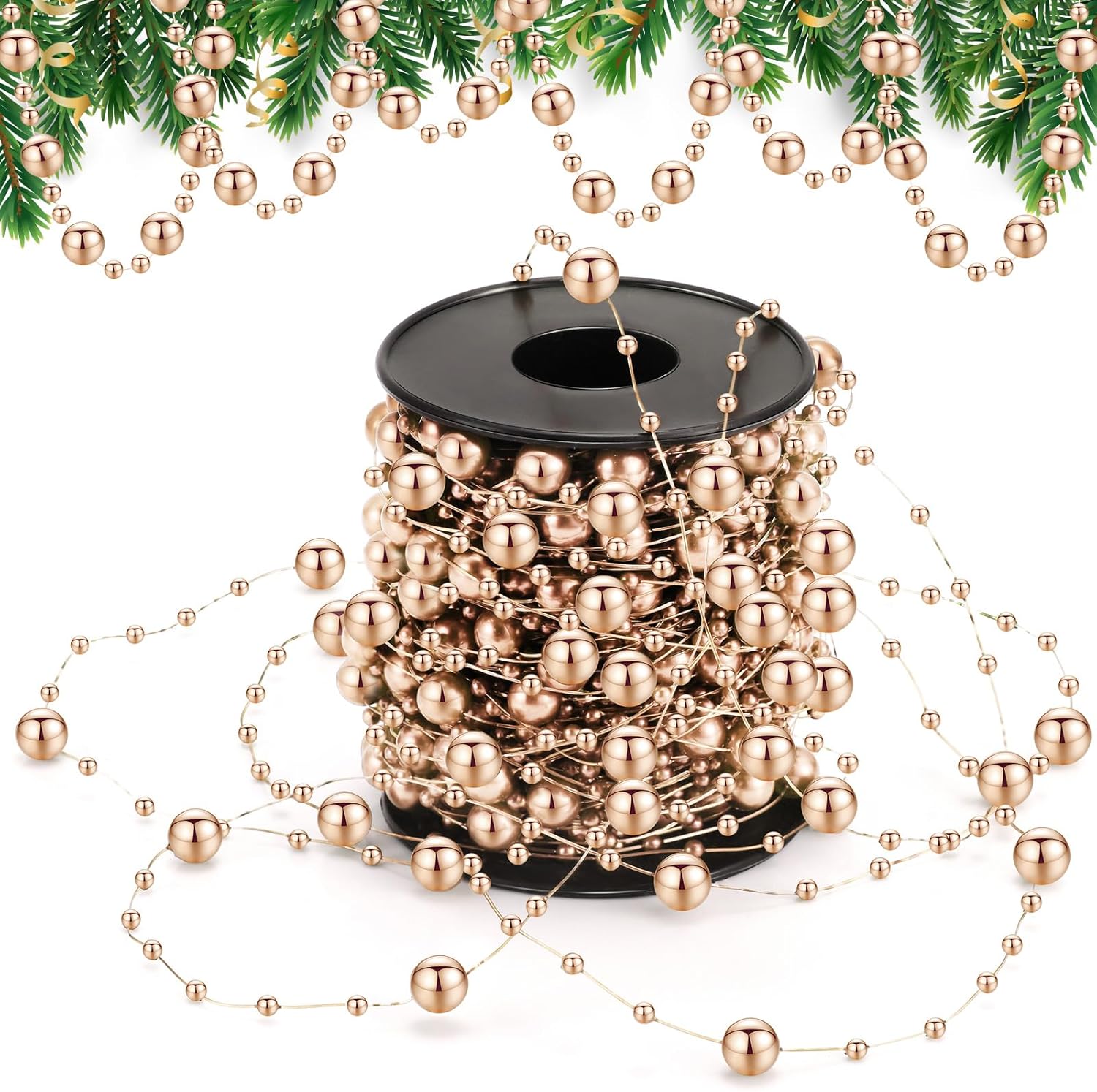 Raise your holiday decorations with this 65.6-foot artificial rose gold pearl bead string.