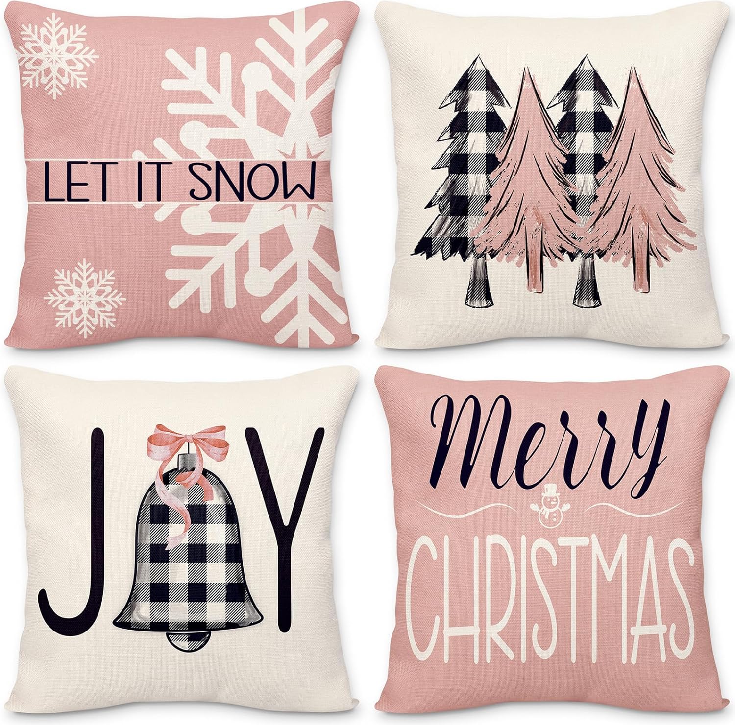 The soft pink and metallic accents are ideal in couches or beds or any sitting area during holidays, as they create warmth, style, and seasonality.