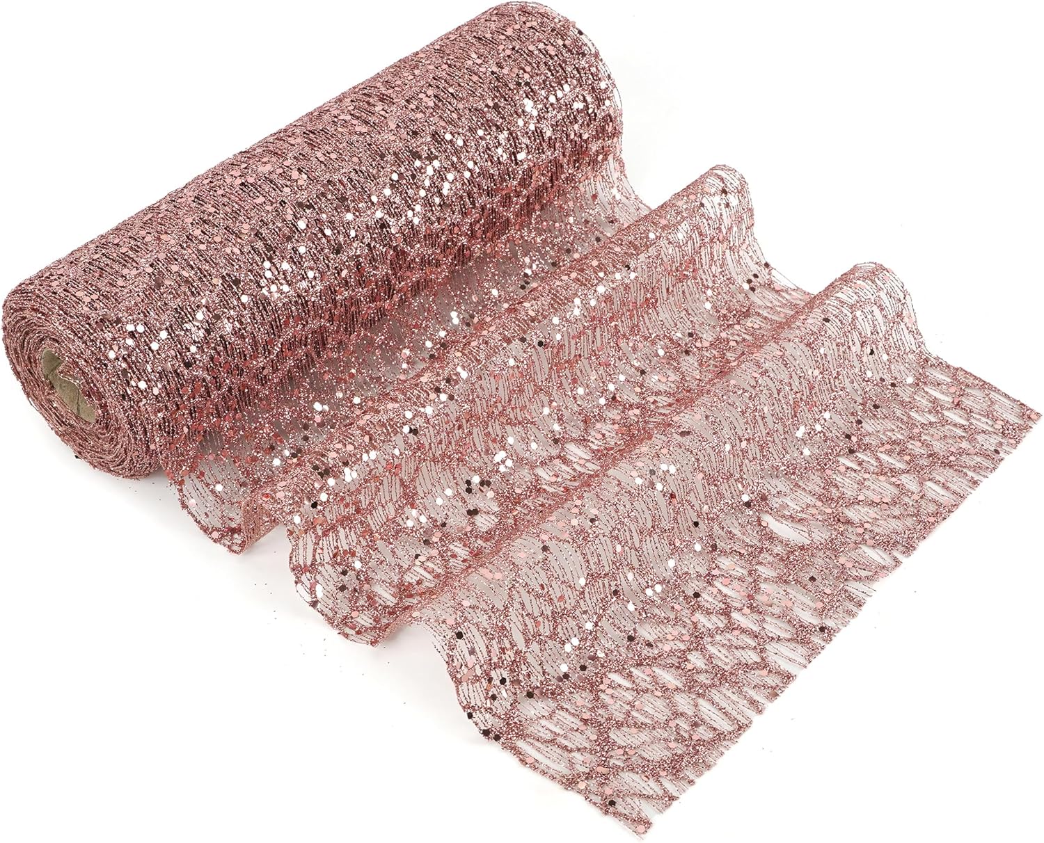 Decorate your holiday with this 10-inch wide is a 10 10-yard roll of rose gold glitter mesh ribbon.