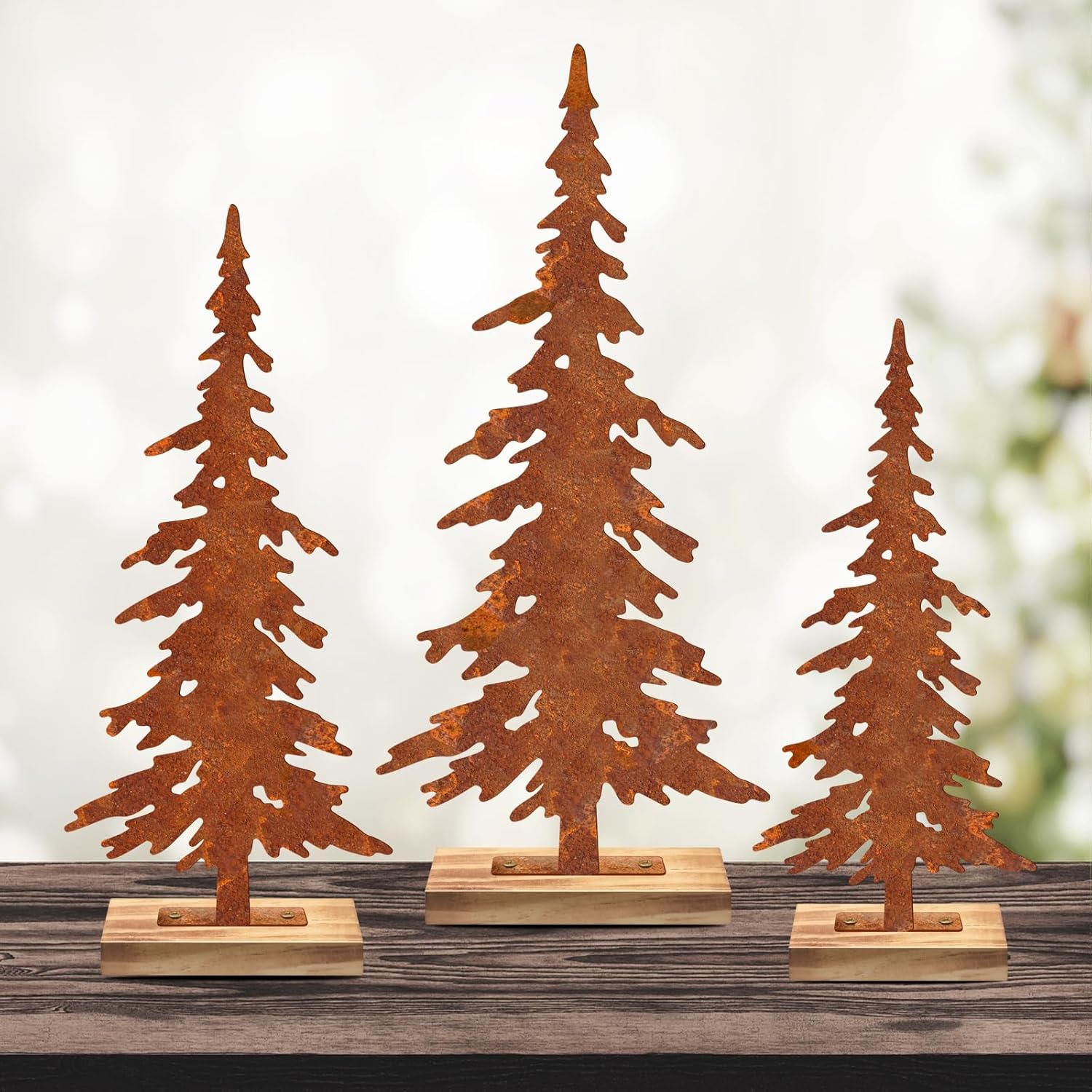 The Set of 3 Metal Christmas Trees delivers a welcoming farmhouse factor to your Christmas dinner table. Their rustic, primitive style is a perfect match to the warm wood and holiday fireplaces, which give it a lovely and welcoming appearance.