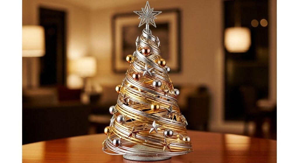 Set it near a mirror or candlelight to let it sparkle even more. This look is perfect for those who want a sophisticated yet festive statement piece. It’s one of the tabletop Christmas tree styles that truly glows with glamour.