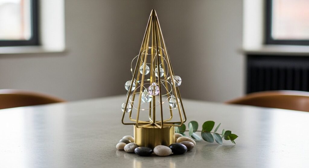 This style looks amazing against white or neutral walls and brings instant sophistication to your holiday decor. It’s one of those tabletop Christmas tree styles that feels modern and timeless at once.