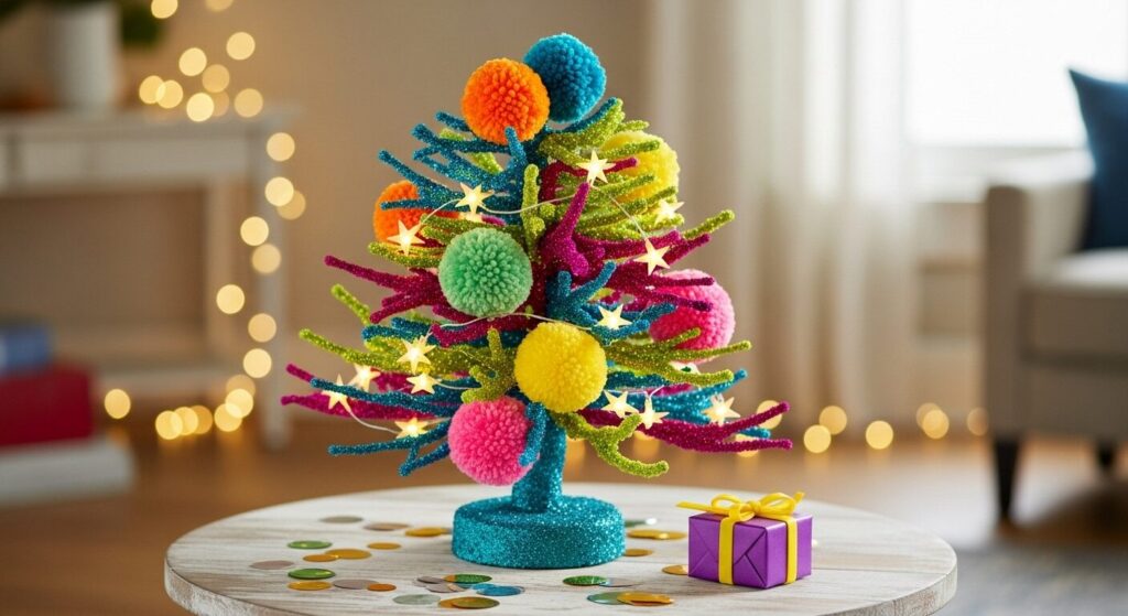 Use matching ornaments and tinsel to create a cohesive theme. Add small lights that switch colors for a truly festive effect. This playful look brings energy and excitement into any room, making it one of the most cheerful tabletop Christmas tree styles ever.