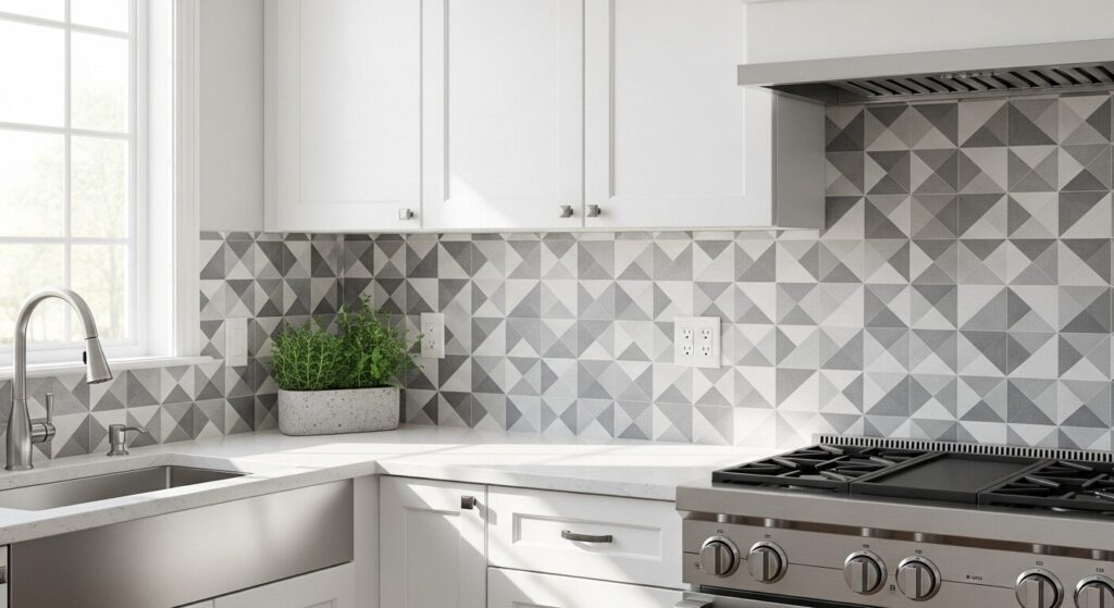 Geometric backsplash patterns are trending among designers because they instantly modernize any kitchen.