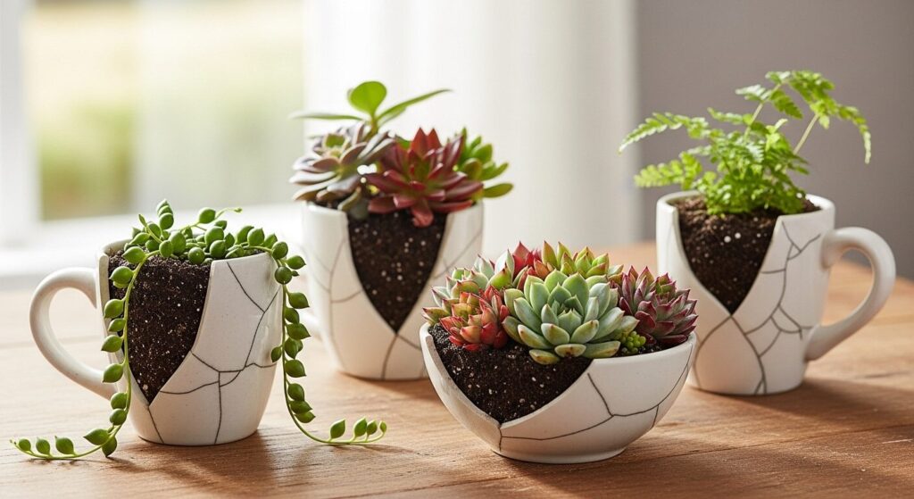 I once filled a broken teacup with succulent cuttings, and it quickly became my favorite desk plant. It reminded me daily that beauty can come from imperfection.