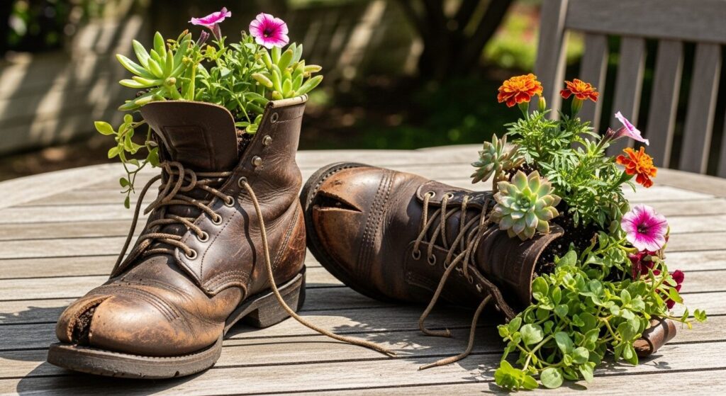 Who knew your worn-out boots could become creative planter projects? Old leather or rubber boots can transform into quirky, eye-catching garden planters that add fun and texture to your outdoor space.
