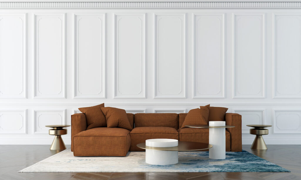 A well-chosen sofa gives structure to white walls and becomes the room’s focal point.
